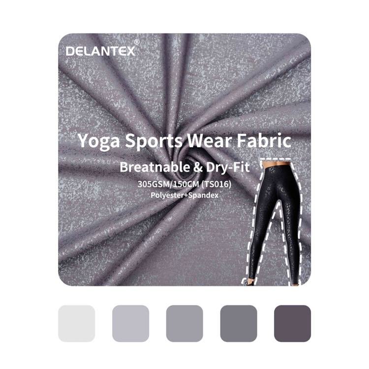Poly spandex fabric is often used in sportswear such as yoga pants, leggings, and compression shorts