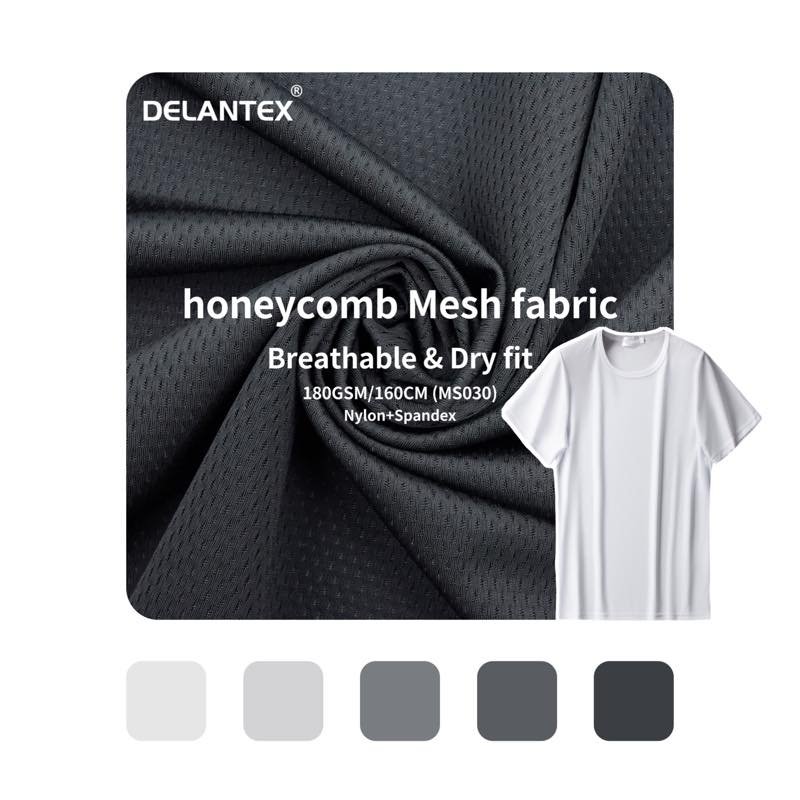 Delantex High density 4 Way Stretch 80% Nylon 20% Spandex Knitting Honeycomb Mesh Breathable Sports Fabric for T-shirt